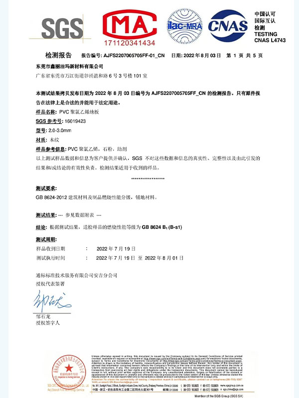 As the world's leading inspection, verification, testing, and certification company, SGS provides independent third-party validation that our LVT flooring meets the most stringent international safety and performance standards. These comprehensive test reports demonstrate our commitment to product excellence and regulatory compliance across global markets.